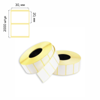 Самоклеящиеся термоэтикетки размером 20×30 мм. Рулон с втулкой диаметром 40 мм содержит 2000 (±5 этикеток). Втулка изготовлена из картона или пластика. Рулоны упакованы в удобные компактные гофрокороба по 24 штуки, внутри коробки — в термоусадочную пленку блоками по 6 штук. Самоклеящиеся термоэтикетки применяются для нанесения веса, штрихкодов, цен и другой информации, маркировки товаров недлительного хранения. Используются в торговых весах с термопечатающей головкой или в термопринтерах. Потенциальные потребители — супермаркеты, производство, центры техобслуживания кассовых аппаратов, снабжающие компании, компании по поставке упаковочных материалов, предприятия, занимающиеся фасовкой продукции и т.д.